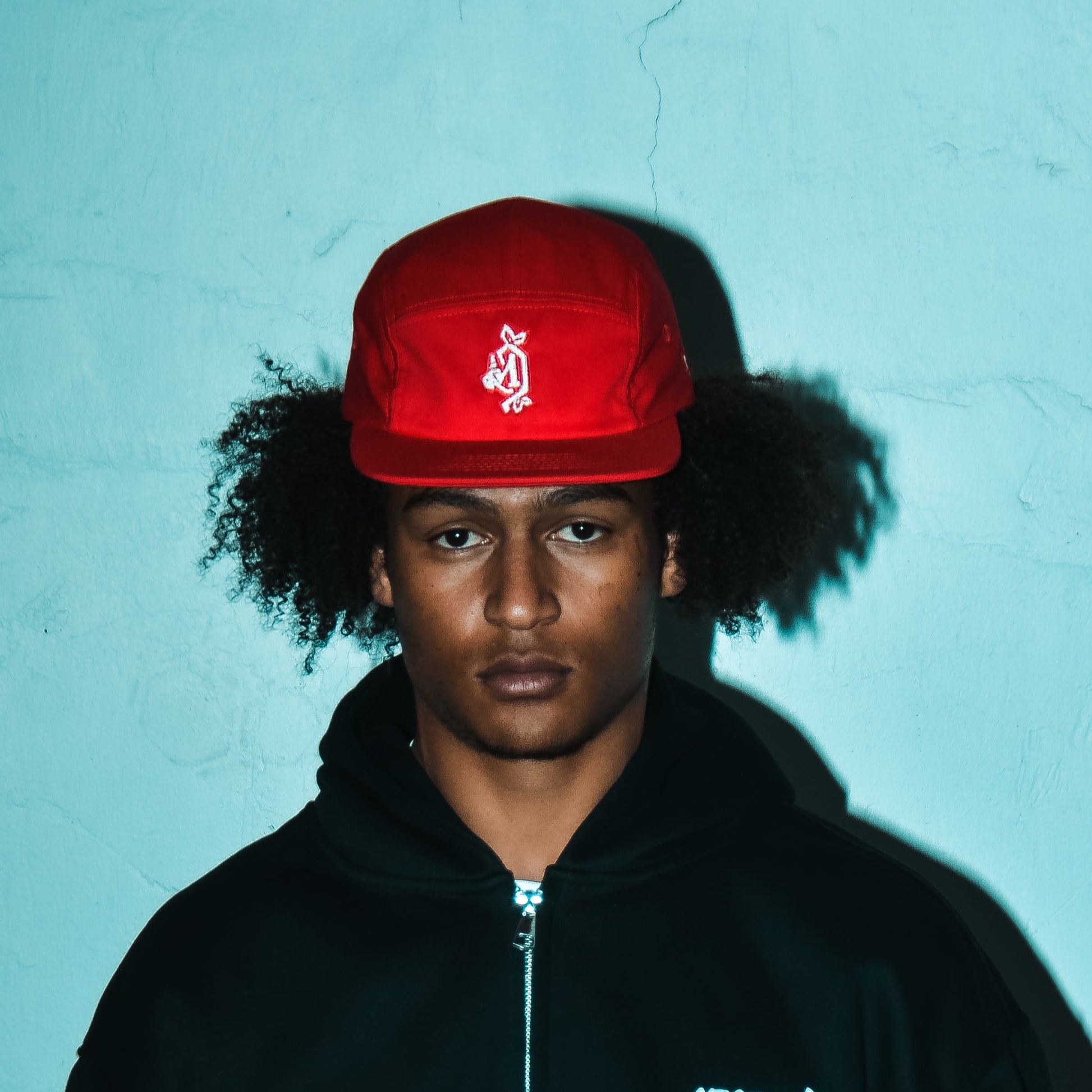 Our new 5 panel cap, with the Metamorphisized Logo, on front, New Era reworked logo on side, and type Face on Back